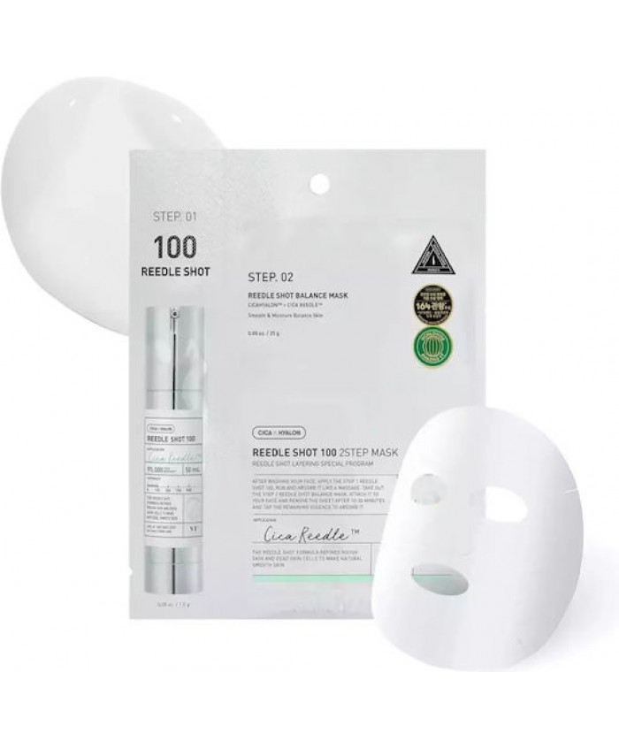 Αυτή η μάσκα 2 βημάτων που περιλαμβάνει Reedle Shot 100 και Reedle Shot Balance Mask βοηθά στη βελτίωση της υφής του δέρματος και στην εξισορρόπηση της κατάστασής του. Βήμα 1: Το Reedle Shot 100 ενισχύει την απορρόφηση των ενεργών συστατικών περιποίησης της επιδερμίδας και μειώνει την εμφάνιση των διεσταλμένων πόρων. Βήμα 2: Η vegan sheet mask προσφέρει πλούσια ενυδατικά και καταπραϋντικά συστατικά στο δέρμα. Έχει πραγματοποιηθεί δερματολογικό τεστ ανοχής.
